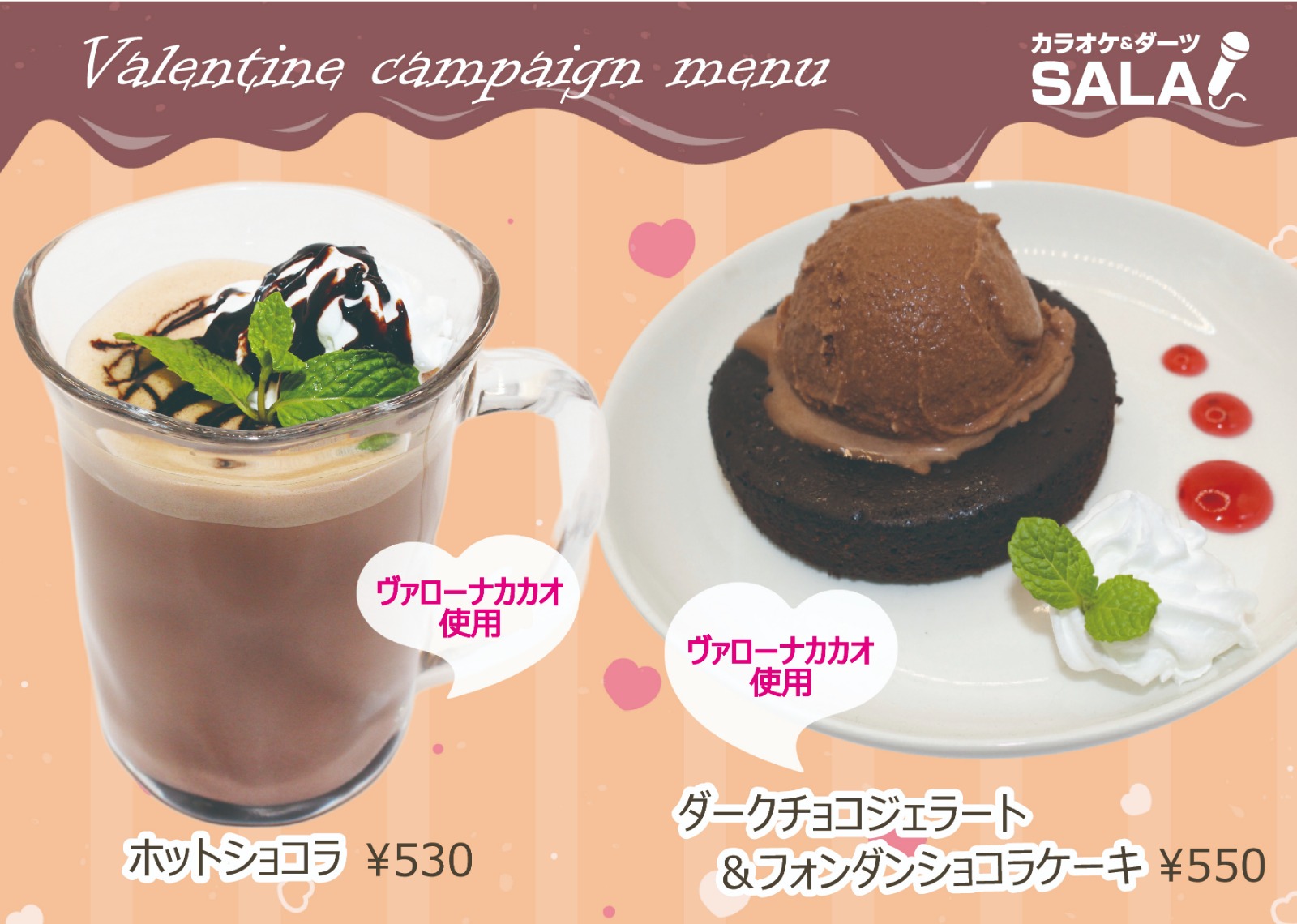 2月は「ダークチョコレートジェラート」を使用したメニューが期間限定で登場!SALAの